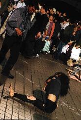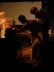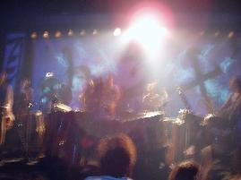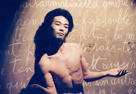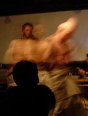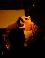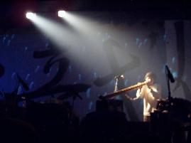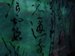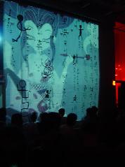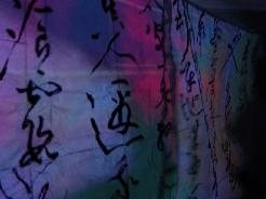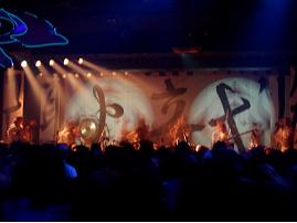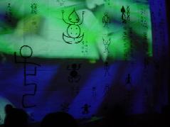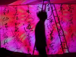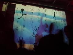 A calligraphy titled "|¨ΞΉTlΧ " (12 meters on 4 meters - Black ink on Japanese paper) with ΎΫ group GOCOO(Taiko - Japanese traditional drums) :
