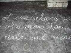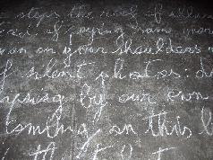 I wrote beneath them. Beveled. Through their trampling. Frenetic. A word always disapeared after some lines. That is it's promise.