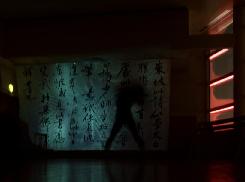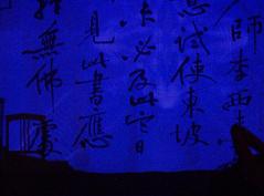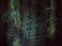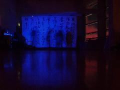 At the top floor of the building with large windows displaying a beautiful overview of the nocturnal city: the calligraphy from this dark room, illuminated by Masato Ohno's video work, enlighted smoothly.