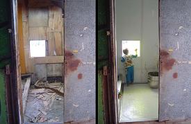The work consisted in rebuilding to the identical the most dilapidated and deserted room of the market with aluminum and plastic. The reason for using these materials is that they have to be inedible to termites, resistant to rot and waterproof.