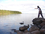 Here I tried, toe unsuccessfully, to leave for the numerous ants of the forest to digest, honey-painted sentences describing how Aino, the luckless lass, drowned herself, and in the deep woods installed into spider webs words describing Väinämöinen playing his Kantele -- an allusion to Roland Barthes (cf. Mythologies, 1957). But as I reached towards the final chapters of the Karelian epic, when death's daughter get wetted by a great gust of wind till her womb swelled with children in a barren glade, and she must unload her belly in a swamp, a marshy sauna full of smoke, bringing forth nine sons in one summer night, I finally decided to give lake Pielinen some message-in-a-bottle for the salvation of myself.
