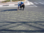 Sort of succinct graffiti, the installation is a poetic and cathartic work of vulgarization consisting in the traversing of the public space with a single sentence of automatic writing. Abreaction, the intervention invite an exteriorisation of emotional tension, possible effect according to Aristotle of tragedy on the audience (Poetics, VI and VIII).