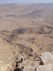 Gathering thoughts, the intervention consisted of a morning walk towards the Machtesh Ramon to voice a Soliloquy (monologue in drama) towards the only stable thing there seemed to be in this absurd biblical place, the sole perennial audience, the last echo to humanity's madness: the Crater, vast atrium of decay.