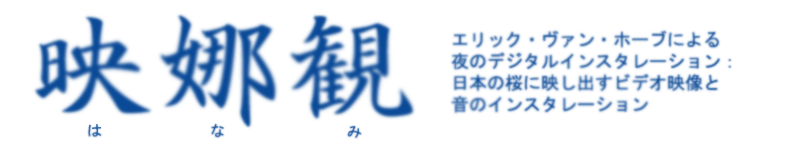 Back to top 映娜観は桜の花見の時期に桜の木にビデオを映し出す夜間のインスタレーションである。 花見は平安(794年ー1185年)時代から続く春を迎える日本の伝統行事で、4月初め花が咲いた桜の木の下に多くの人々や家族、友人、仕事仲間が集まり、ビニールシートの上に座ってのんびり花を見上げてお弁当を広げるものである。 今回のプロジェクトには日本語の同音異義語で遊んだ名称がつけられている。通常の花見は「花」と「見る」から成り立っているが、プロジェクトの名称「映娜観」は意味は異なるが読みは同じで「は」「映」(映し出す)、「な」娜(たおやか)、「み」観(観る)を組み合わせたものである。今回の作品は人生なおもな節目、誕生、思春期、成人、老い、死を桜の木に映し出したデジタルインスタレーションである。 作品の鑑賞者はドルビータイプの音響環境の中に身を置き、花を眺め、この作品のために用意されたお弁当を食べながら夕暮れの散歩を楽しむことができる。 映娜観は聴覚、視覚、味覚に訴える作品である。 |