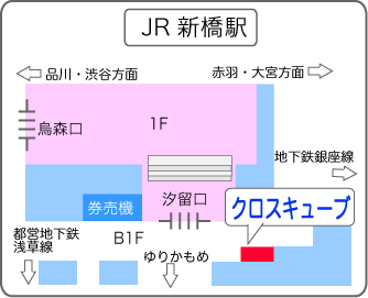 Shimbashi Station Karasumori Exit / Shiodome Entrance (follow Exit 4), underground level 1 (B1F)